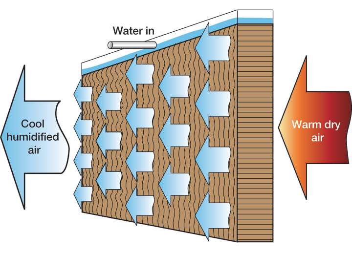 Los sistemas de almacenamiento en frío también requieren regulación constante del aire y la humedad, ya que los productos tales como productos y diversos alimentos requieren un control de humedad cercano para evitar la pérdida de humedad. De lo contrario, el aire más cálido atrae la humedad de cualquier superficie incluyendo mercancías almacenadas congeladas o refrigeradas. Esto puede resultar en hasta un 20 por ciento de reducción en el peso de algunos productos, que afectan a la apariencia, calidad y vida útil general. Un sistema de enfriamiento evaporativo permite la optimización de la humedad y la temperatura, con una HR de alrededor del 95 por ciento típicamente ideal para productos y productos en almacenamiento en frío.