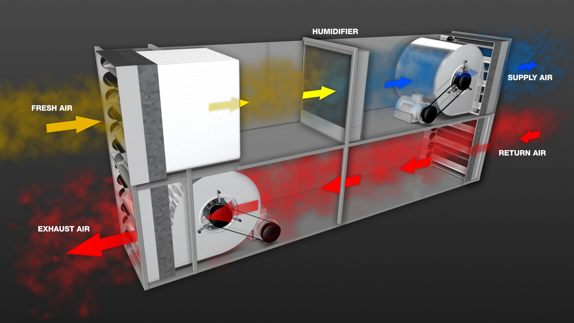 Para fomentar la recuperación rápida y libre de infecciones de los pacientes y minimizar la propagación de enfermedades transmitidas por el aire, es imperativo que los hospitales y otros centros de atención al paciente mantengan una atmósfera interior cómoda con una humedad relativa (HR) de 40 a 60 por ciento. Las desviaciones en cualquier dirección pueden resultar en la reducción de la calidad del aire a través del aumento del crecimiento de diversas formas de bacterias en el aire. La instalación de un sistema de enfriamiento por evaporación permitirá que este sea regulado eficientemente y garantice a los pacientes un proceso de curación suave e ininterrumpida, minimizando partículas de polvo en el aire, estática, coagulación prematura, ojos y gargantas secas y cualquier tipo de amenazas a la salud. La eficiencia energética de estos sistemas permite que la energía de otro modo desperdiciada sea utilizada por los equipos que son vitales para salvar vidas, que típicamente consume más electricidad.