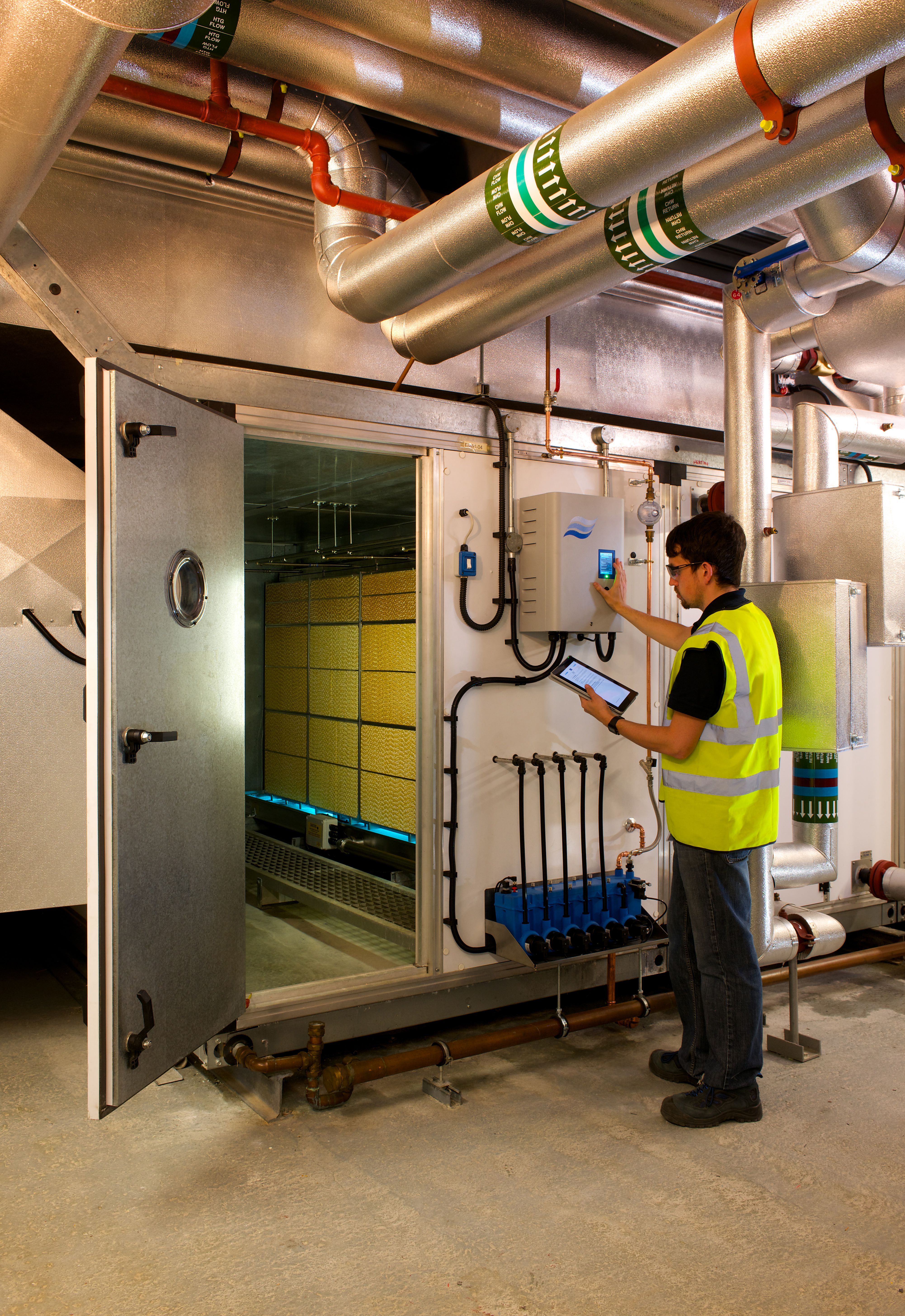 En algunos casos, las bajas temperaturas deben mantenerse constantemente para garantizar la fiabilidad de un equipo específico. En centros de datos con pasillos de servidores que producen calor, es imperativo que un sistema de refrigeración evaporativo se instale para evitar que las temperaturas alcancen niveles críticos, así como también preservar un rango constante de humedad entre 40 a 60 por ciento. De lo contrario, el aire excesivamente húmedo generara un cortocircuito de los equipos electrónicos. Los humidificadores se incorporan a menudo con sistemas de refrigeración por aire libres para aumentar la capacidad de enfriamiento con un efecto de refrigeración por evaporación o proporcionar humidificación de alta carga y bajo costo al gran volumen de aire que fluye a través del sistema de ventilación del centro de datos. Por lo tanto, un sistema de enfriamiento evaporativo es ideal para este tipo de ambiente.