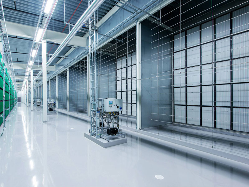 Para mantener su eficiencia de avanzada, la instalación usa nuestro sistema de spray de alta presión y bajo consumo y nuestros confiables humidificadores evaporativos, a fin de mantener la humedad dentro de sus salas de datos.